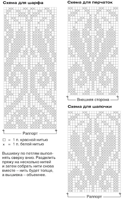 На внешней стороне перчатки выполнить вышивку по петлям по приведенной схеме (для перчаток).