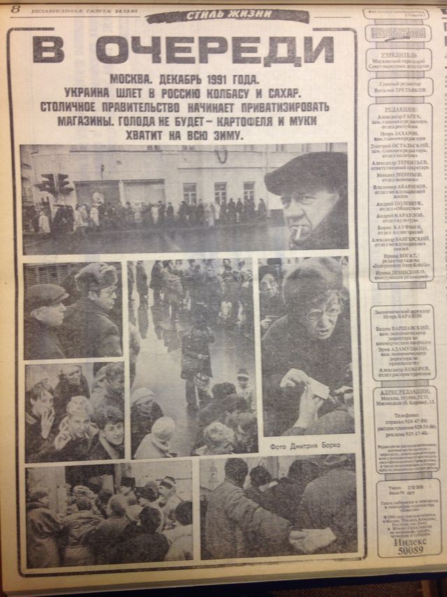 "Независимая газета" обещает, что голода в Москве не будет, и публикует фотографии очередей в столичные магазины.