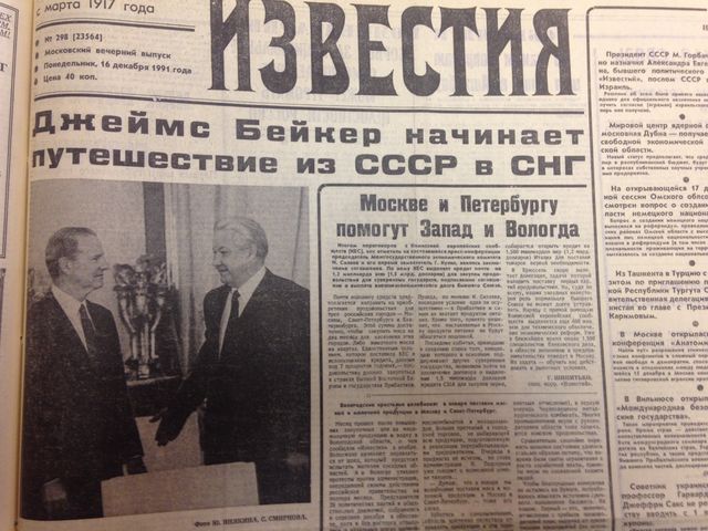 Поскольку 8 декабря 1991 года был выходной день - воскресенье, газеты не сразу отреагировали на Беловежские соглашения.