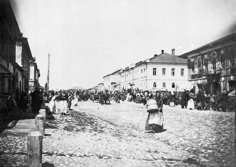 Улица Московская (Л.Толстого), начало XX века (1901-1902 гг.). На вывеске надпись "МАГАЗИН Н.Н. ТУЛИНА".