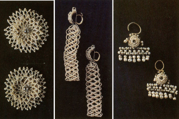 С любовью и удовольствием носили жемчуг. В России добывали много речного жемчуга, использовали и перламутр. С раковин снимали тонкий слой перламутра, рубили его на кусочки, шлифовали и использовали в украшениях.