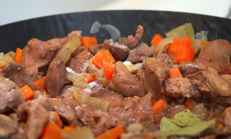 Форму накройте фольгой и поставьте в разогретую до 200° духовку на 30 минут. Затем снимите фольгу и готовьте еще 10 минут, чтобы ушла лишняя влага. Следите, чтобы овощи стали мягкими, а печень полностью пропеклась. Важно, чтобы в форме остался немного сока — именно он сделает паштет особенно нежным.