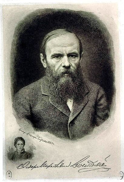 Портрет Ф. М. Достоевского, 1883 год, на офорте В. А. Боброва изображена также вторая жена Достоевского Анна Григорьевна.