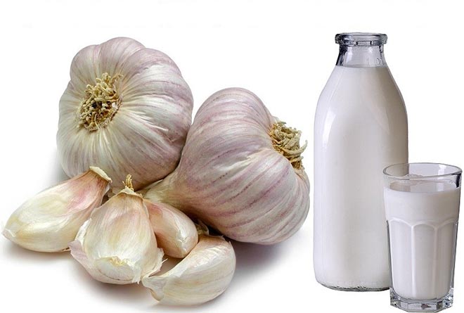 Возьмите 5 зубчиков чеснока и бросьте варить их в 250 мл молока до тех пор, пока не образуется кашица. Готовить следует на маленьком огне в течение 15 минут. После чего дайте отвару настояться, и он уже будет готов к употреблению. Принимайте данное средство в течение недели по 5-6 раз в день перед едой. Также можно использовать чесночный сок. Достаточно будет 10-15 капель в столовую ложку теплого молока. Принимать следует строго перед едой.