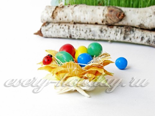 Очень яркая и красивая получается подставка для яиц на Пасху своими руками выполненная в виде подсолнуха. Уверяю вас, она станет лучшим декором праздничного стола.
