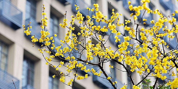 Зимнее цветение химонанта у гробницы императоров династии Мин в китайском Нанкине