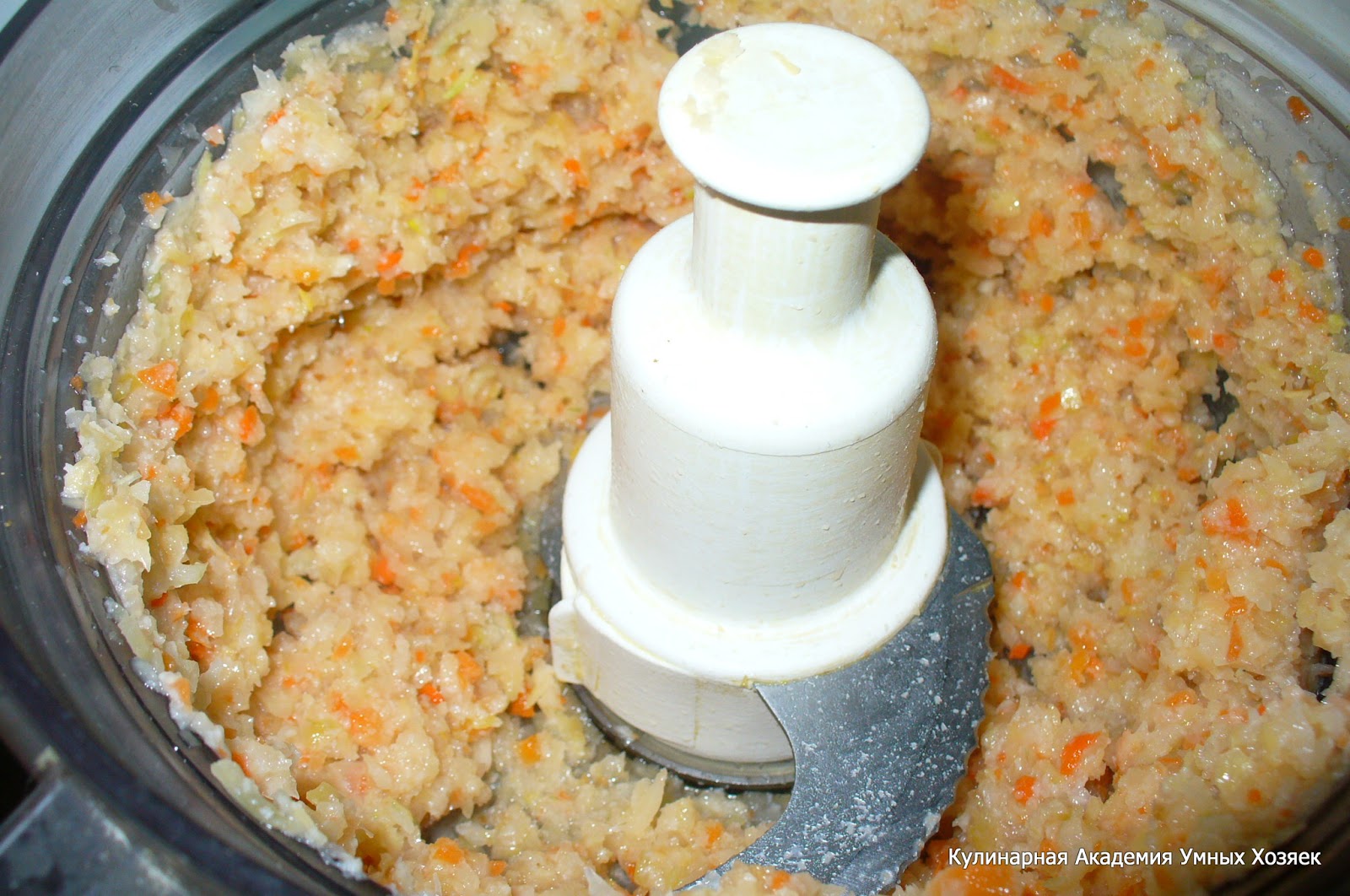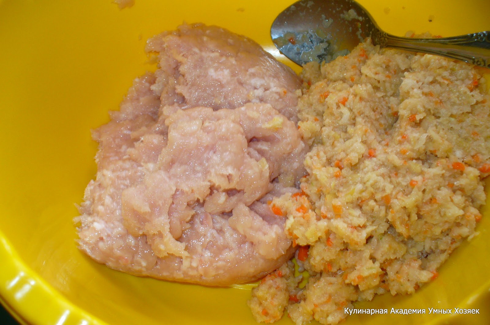 Добавьте капустно-луково-хлебную массу к куриному фаршу.