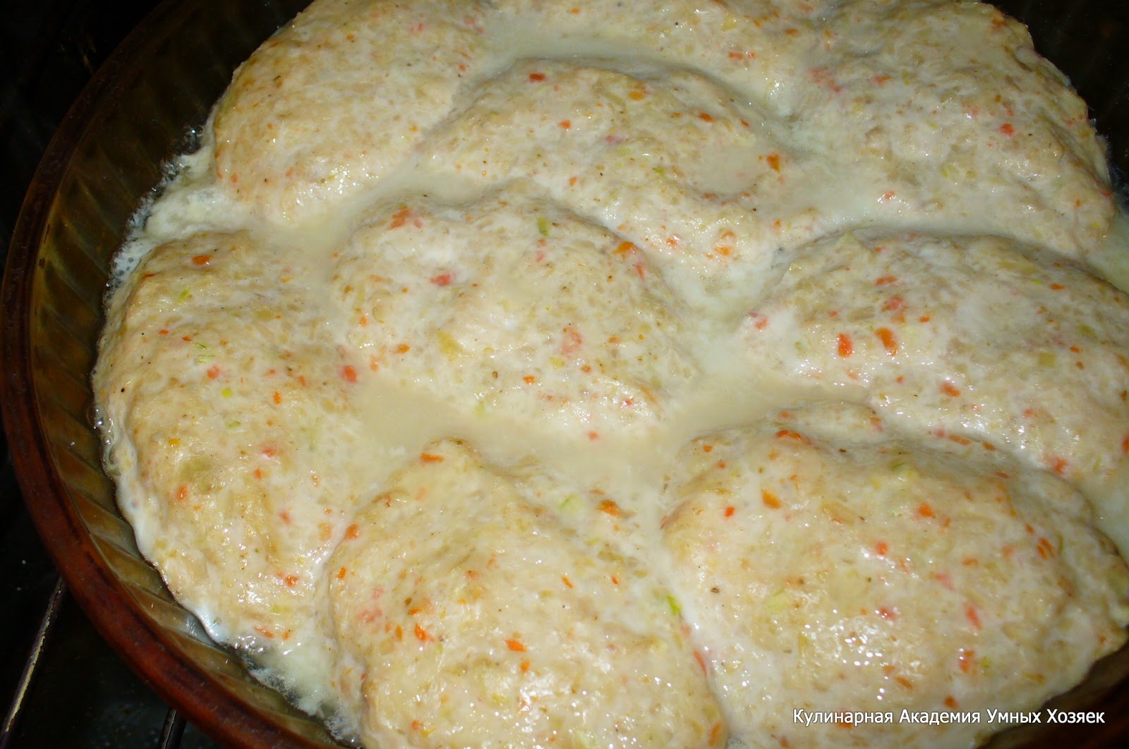 Духовку нужно предварительно разогреть до 200 градусов по Цельсию. Минут через 15-20, когда наши куриные котлетки чуть «схватятся» и посветлеют, выньте форму из духовки