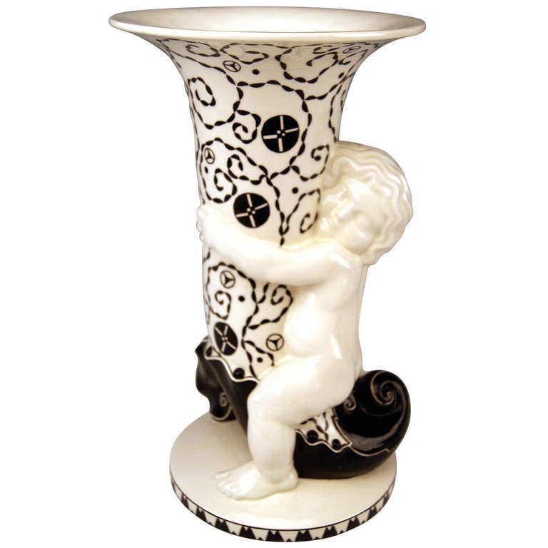 Cherub Clasping Tall Vase 1913 Michael Powolny Art Nouveau