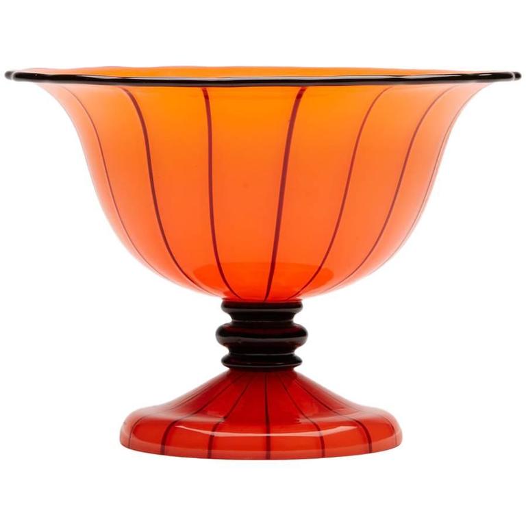 Orange Pedestal Glass Bowl, 1914 Michael Powolny Loetz Tango Piped