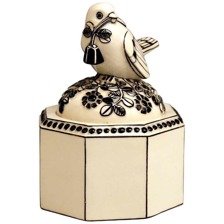 Box Sparrow on Lid Michael Powolny Gmunden Ceramics, 1913-1919