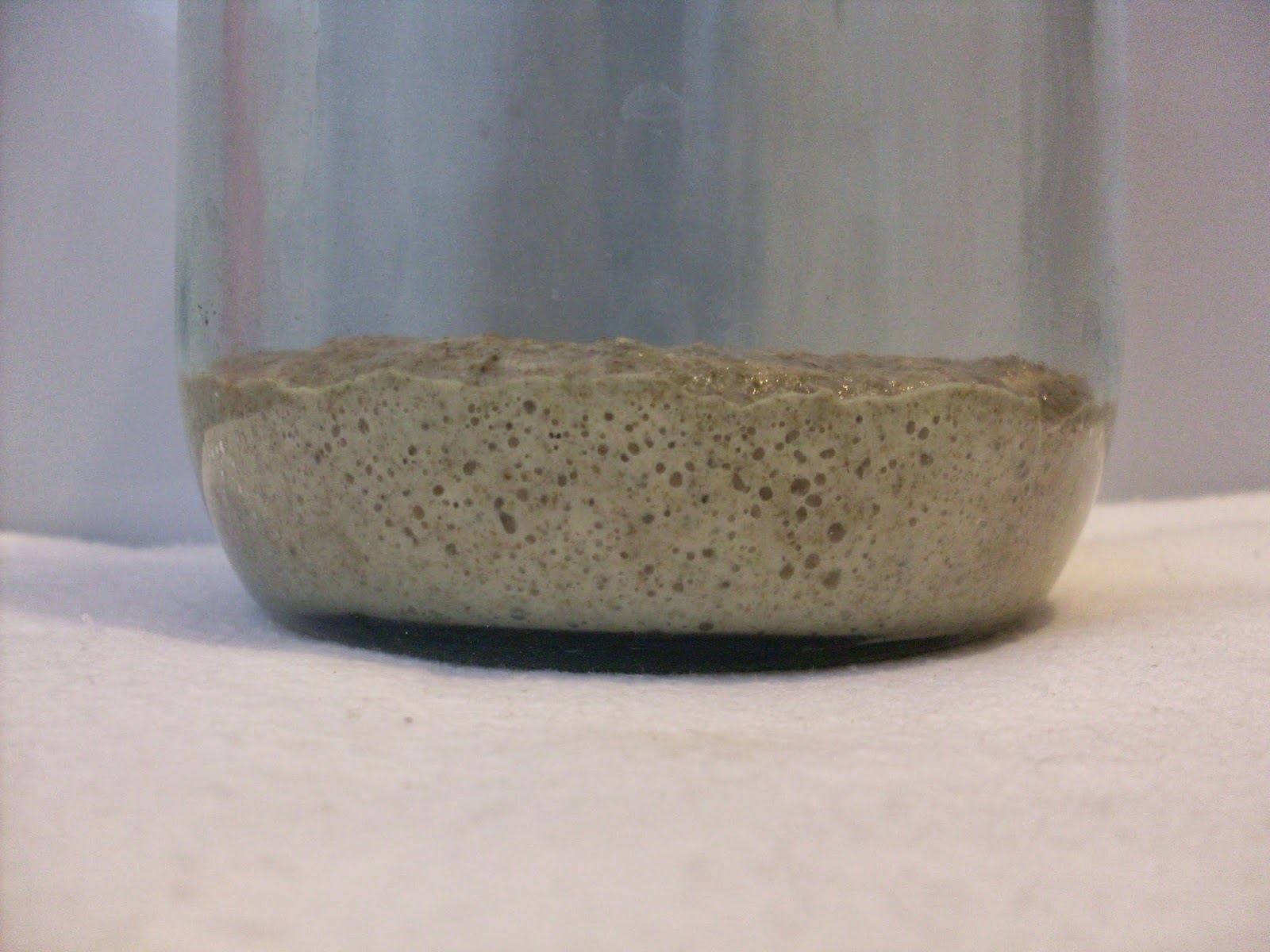 Как видите закваска начала бродить, образовались пузырьки. Запах закваски ужасный, это нормально, так как сейчас образовываются бактерии "бродильные", которые со временем погибнут и на смену появятся кисломолочные, закваска начнет пахнуть приятно как опара на дрожжах.