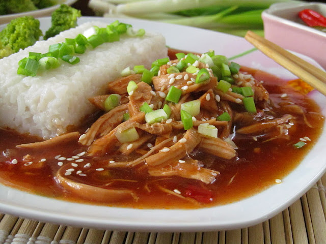 Подавать курочку рекомендую с отварным рисом и брокколи, посыпав сверху кунжутом и зеленым луком.