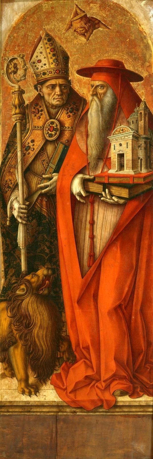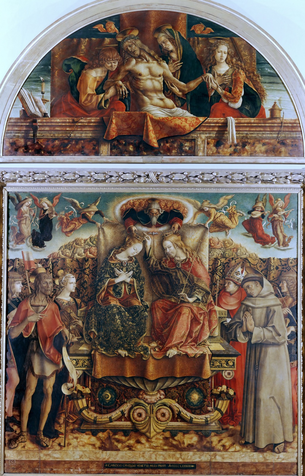Большой алтарный образ подписан: «OPVS CAROLI CRIVELLI VENETI» (произведение Карло Кривелли венецианца). Напоминание о месте рождения художника свидетельствует о том, что он работал вдали от Венеции: все основные произведения Карло Кривелли созданы на территориях Марке, находившихся во владении Рима.