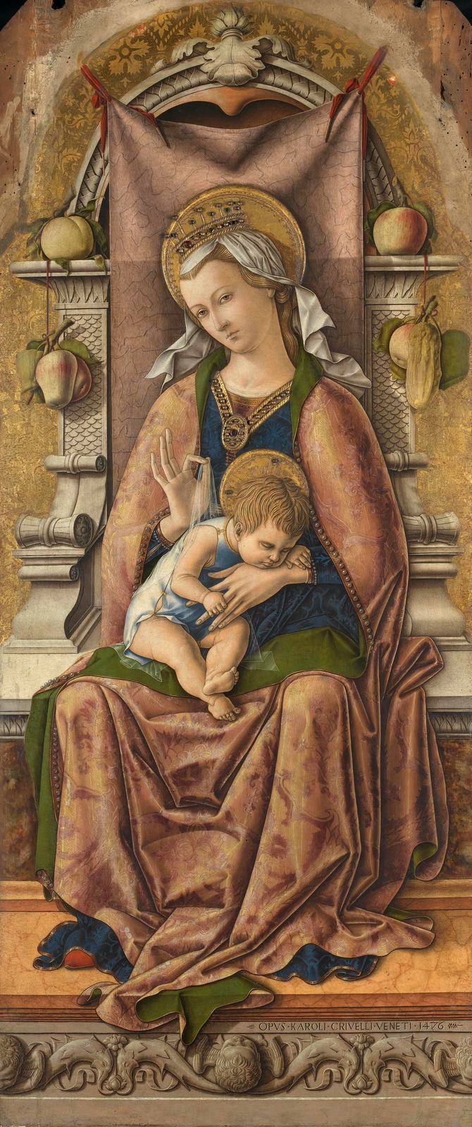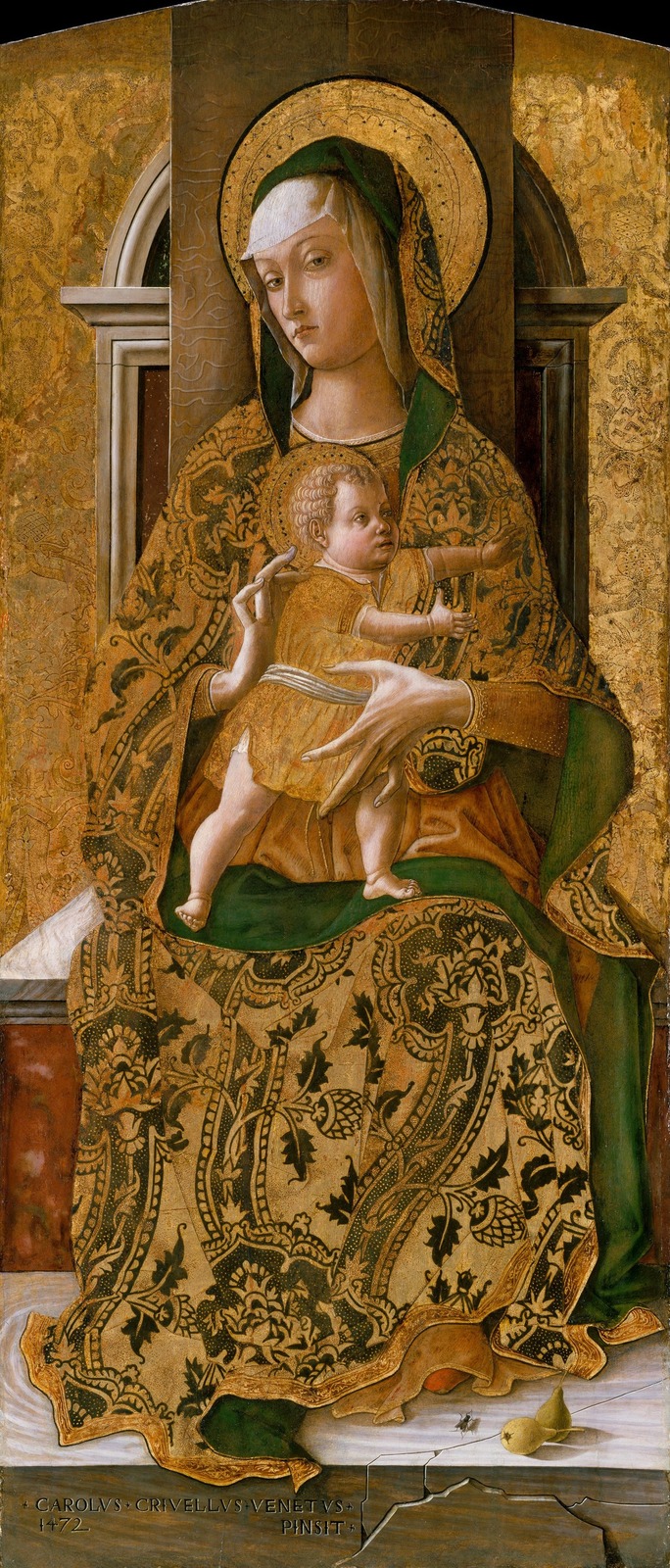 Altarpiece painted for a Dominican church in the Marchigian_центральная панель Мадонна с Младенцем на троне (Madonna and Child Enthroned)_1472_98.4 х 43.8_дерево, темпера по золотому грунту_Нью-Йорк, Музей Метрополитен