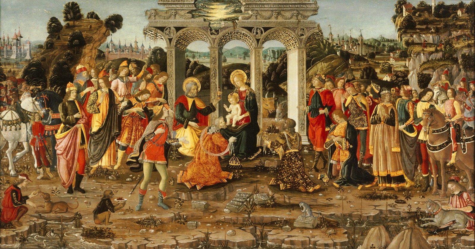 Поклонение волхвов (The Adoration of the Magi)_1480-1490_89.2 х 170.8_дерево, темпера_Мемфис, Художественный музей