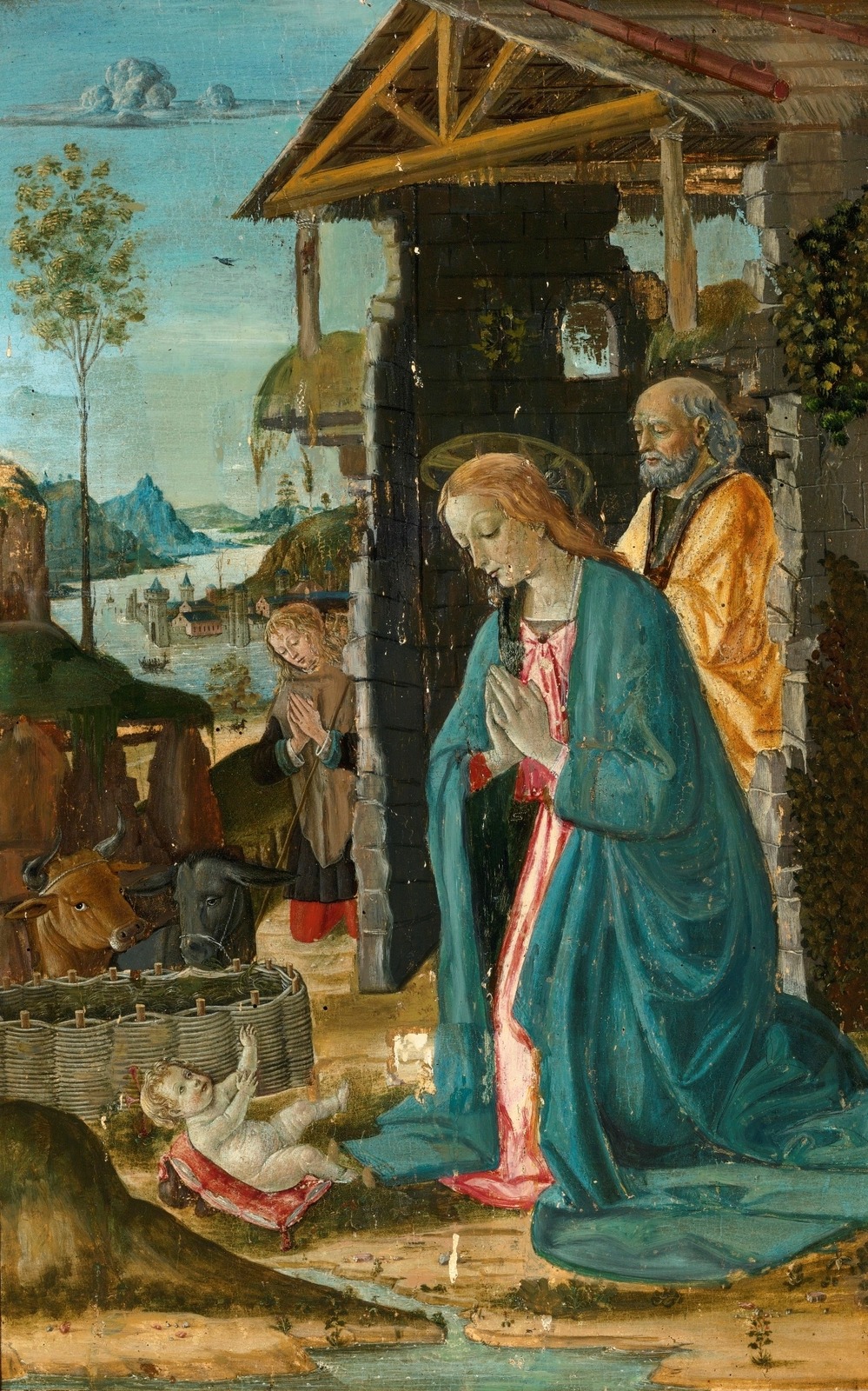 Поклонение Младенцу Христу (Madonna Adoring The Christ Child)_67.5 х 39.4_дерево, темпера_Частное собрание