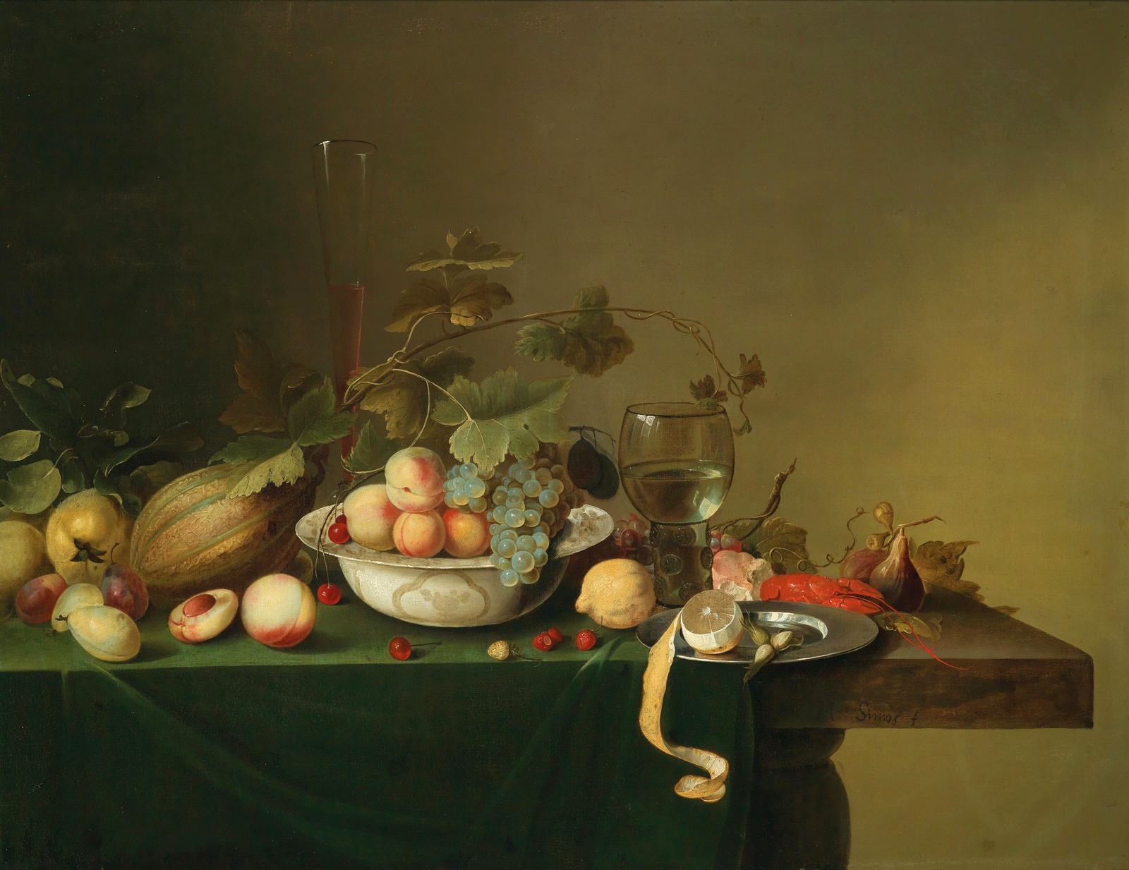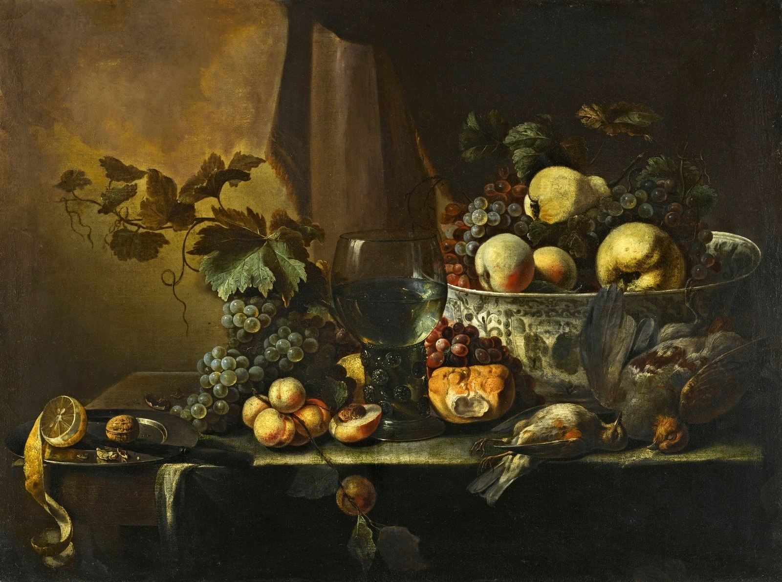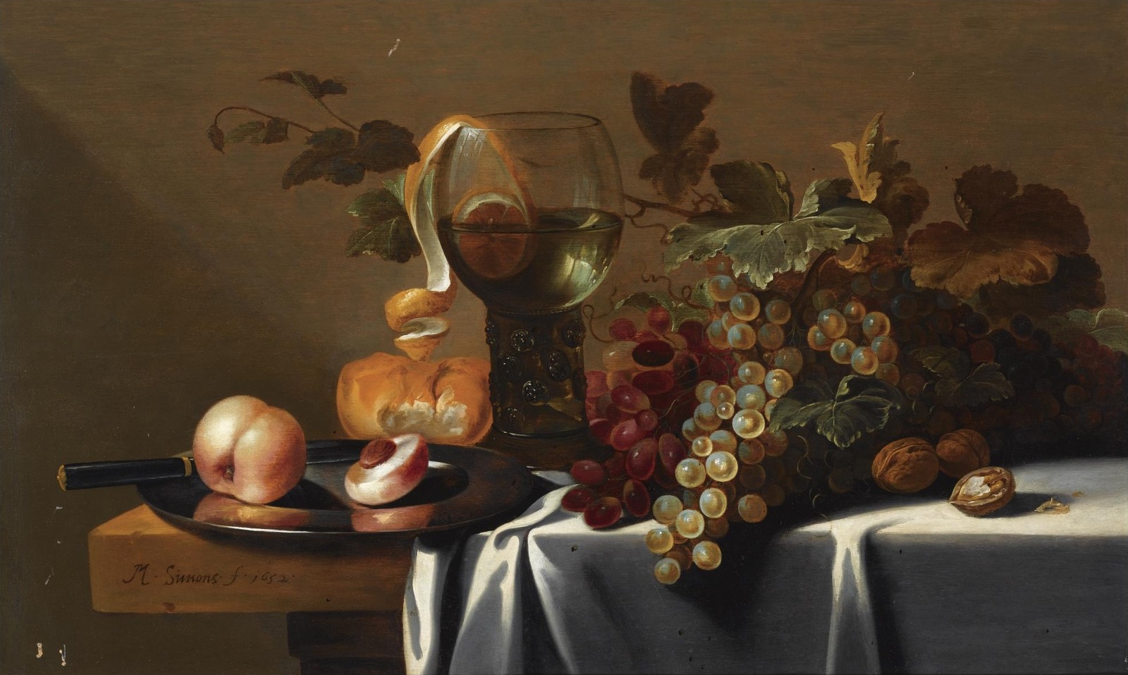 1650_Натюрморт с фруктами и рёмером (Still life with fruit and Roemer)_91.7 х 117.4_х.,м._Частное собрание