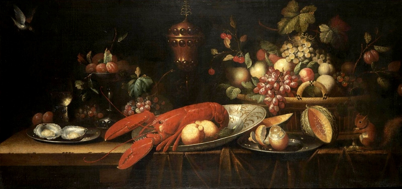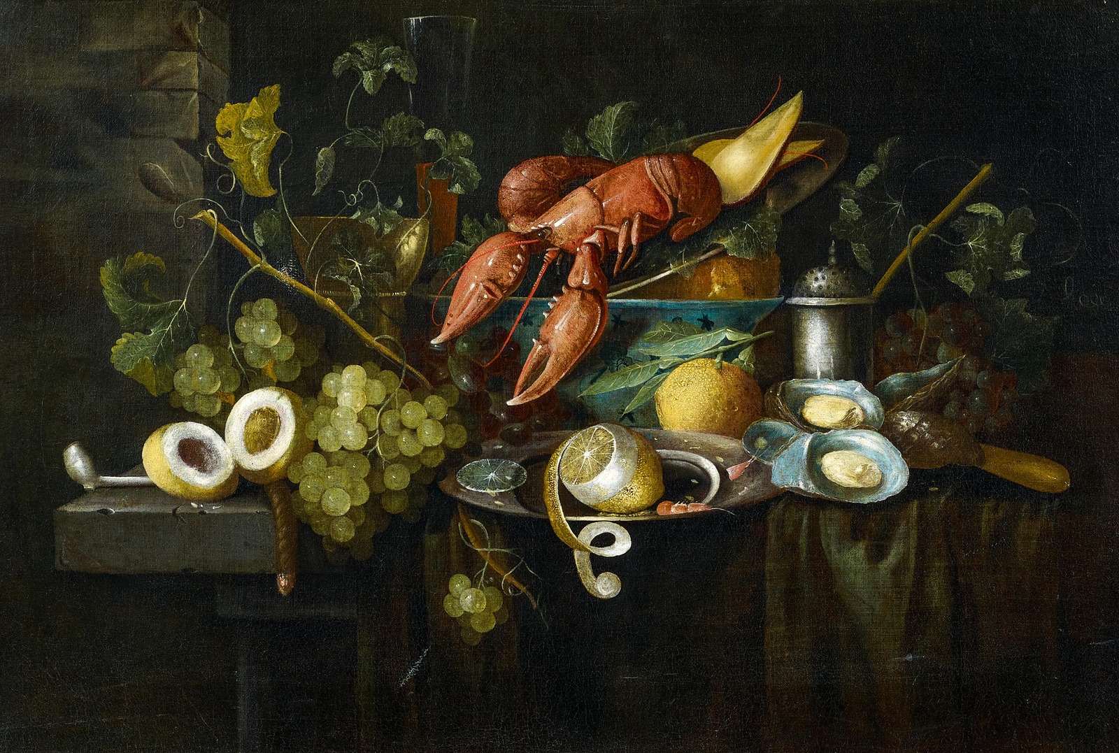 Натюрморт с омаром, фруктами и устрицами (Still Life with Lobster, Fruit, and Oysters)_55 х 82_х.,м._Частное собрание