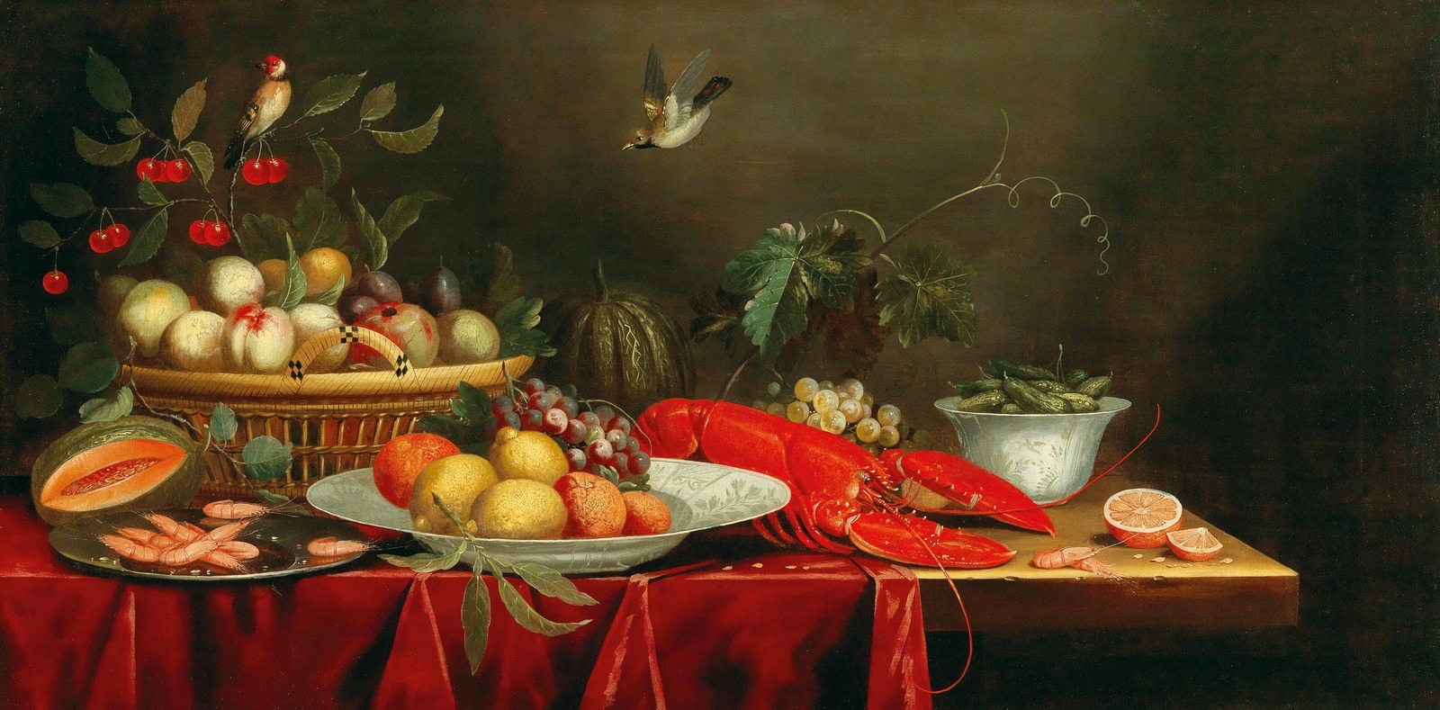 Натюрморт с омаром и фруктами (Still life with lobster and fruit)_75.8 х 162_х.,м._Частное собрание