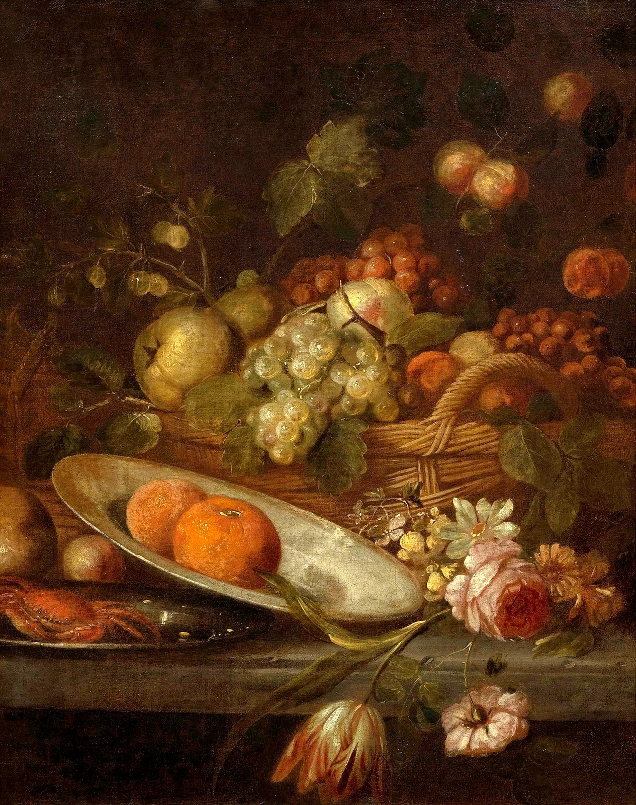 Натюрморт с фруктами и крабом (A still life of fruit with a crab)_50 х 57.5_х.,м._Частное собрание