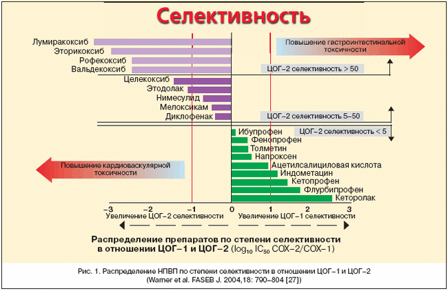 Собственно химическая формула определяет селективность (избирательность) НПВС к каждой из изоформ ЦОГ и соответственно спектр применения.
