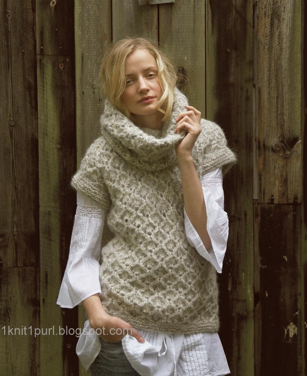 Плотность вязания: 11,5 петель на 18 рядов – 10х10 см спицами 8 мм, нитью в два сложения.