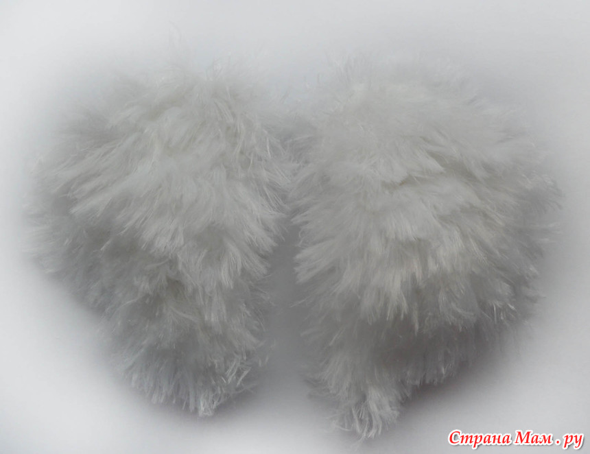 Для каждой туфли связать 2 детали. У одной нить оборвать и закрепить. У второй нить не обрываем. Сложить две детали изнанкой внутрь. Между деталями проложить стельку.