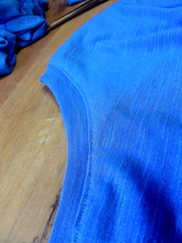 Я шила вдоль верхнего плеча и от подмышки вниз по боковым швам.