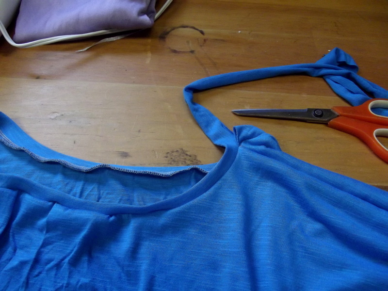 Я вырезала вокруг рубашки, что делает рукава длиннее и декольте стиль лодки шеи.