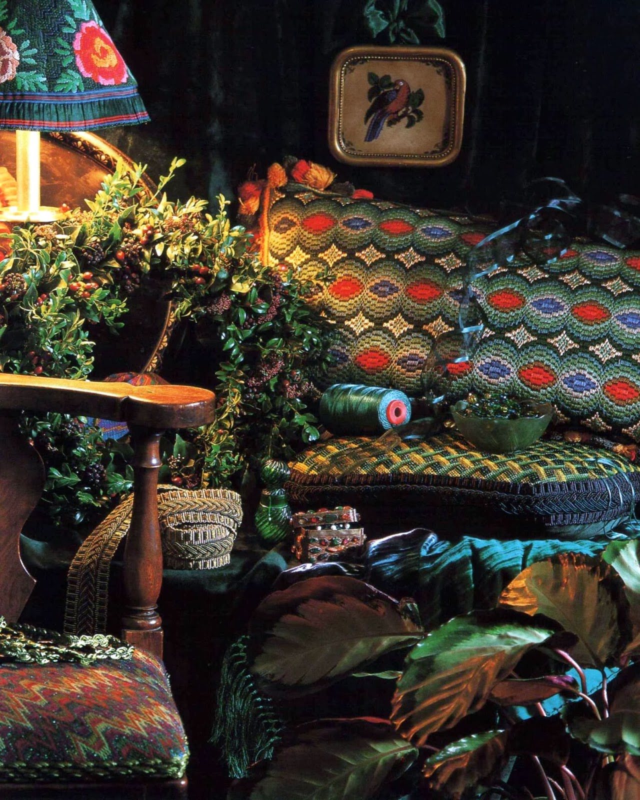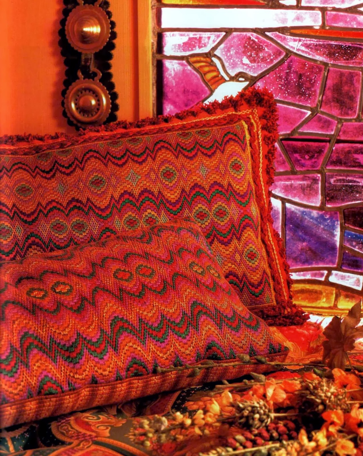 [320x320]Предметы вышитые в этом стиле производились в небольших семейных мастерских. Традиционно это была обивка для мягкой мебели, подушки и покрывала выполненные геометрическим рисунком "зиг-заг" или ромбами с использованием тонких шерстяных ниток.