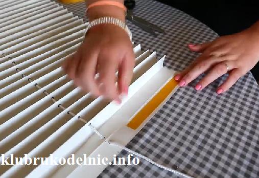 7. Противоположный конец шторы плиссе склеем клеящей полоской , как вы видите на фото.