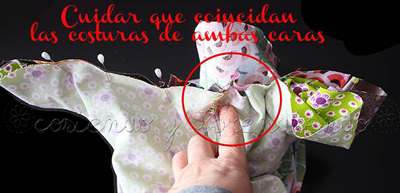 Теперь внутри мешка шить ткань, она помещается лицом к лицу, дюймовой и сшить иголкой