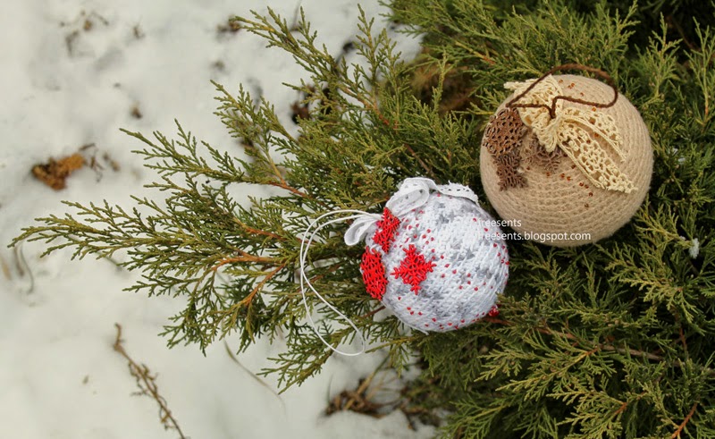 5. Вязать начинаем с "шапочки". Обычная цепочка воздушных петель, которую потом обвязываем простейшим столбиком без накида. Сколько прибавлять петель для увеличения круга, рассказывать не буду, это зависит от диаметра шара и толщины нити. Я это делаю равномерно через определенное количество петель, определяя "на глаз" и постоянно примеряя на шар.