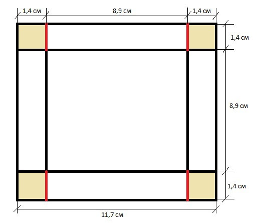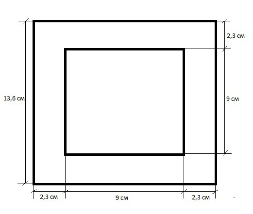 Приступаем ко второй основной детали. Такой же, как взятый за основу, картон размером 11,7х11,7 см размечаем в соответствии с рисунком:
