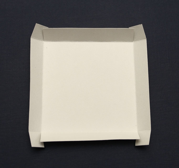 По черным линиям бигуем и сгибаем, по красным – надрезаем. Смазываем клеем квадратики, обозначенные бежевым цветом, и склеиваем. Должно получиться подобие дна коробочки.