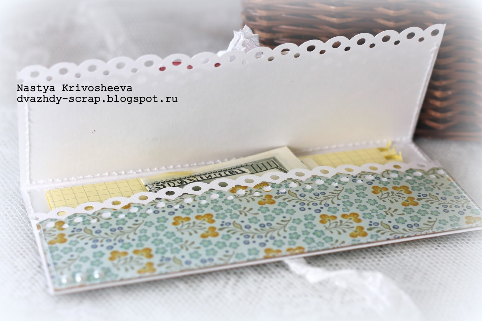 Дважды). Хочу поделиться с вами техникой изготовления подарочного конверта. Уверена, что хотя бы раз каждой скрап-мастерице приходилось делать такой конвертик. Красиво подарить денежку, сертификат на покупку в любимом магазине, путёвку на незабываемый отдых или что-то подобное всегда приятно и получателю подарка, и тому, кто его преподносит.