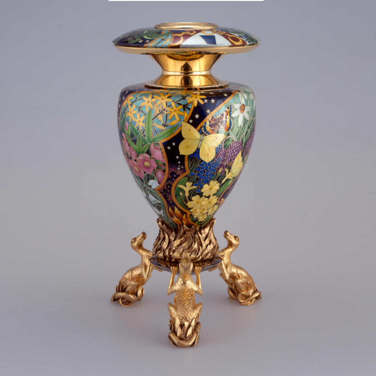 После того, как дизайн готов, на металле вручную вырезается рельеф. Использование рельефной резьбы придает эмали четкость и жизненность. Получающаяся в результате игра света и тени имеет огромное значение для живописного эффекта — прозрачность придает дыхание жизни всему произведению.