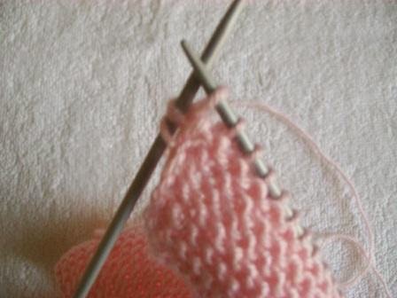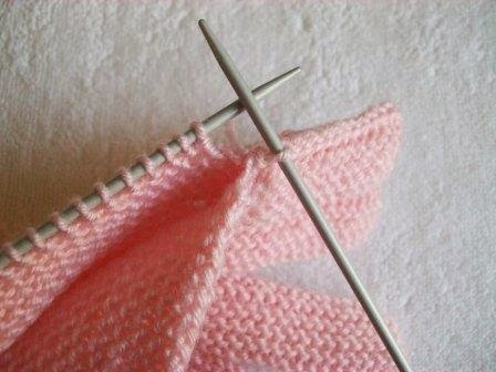 Таким образом, вязание начинает идти в обратном направлении. К мизинцу.