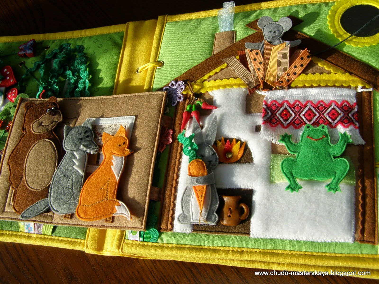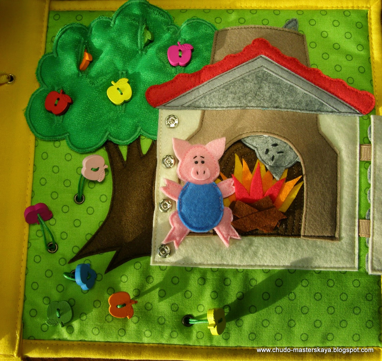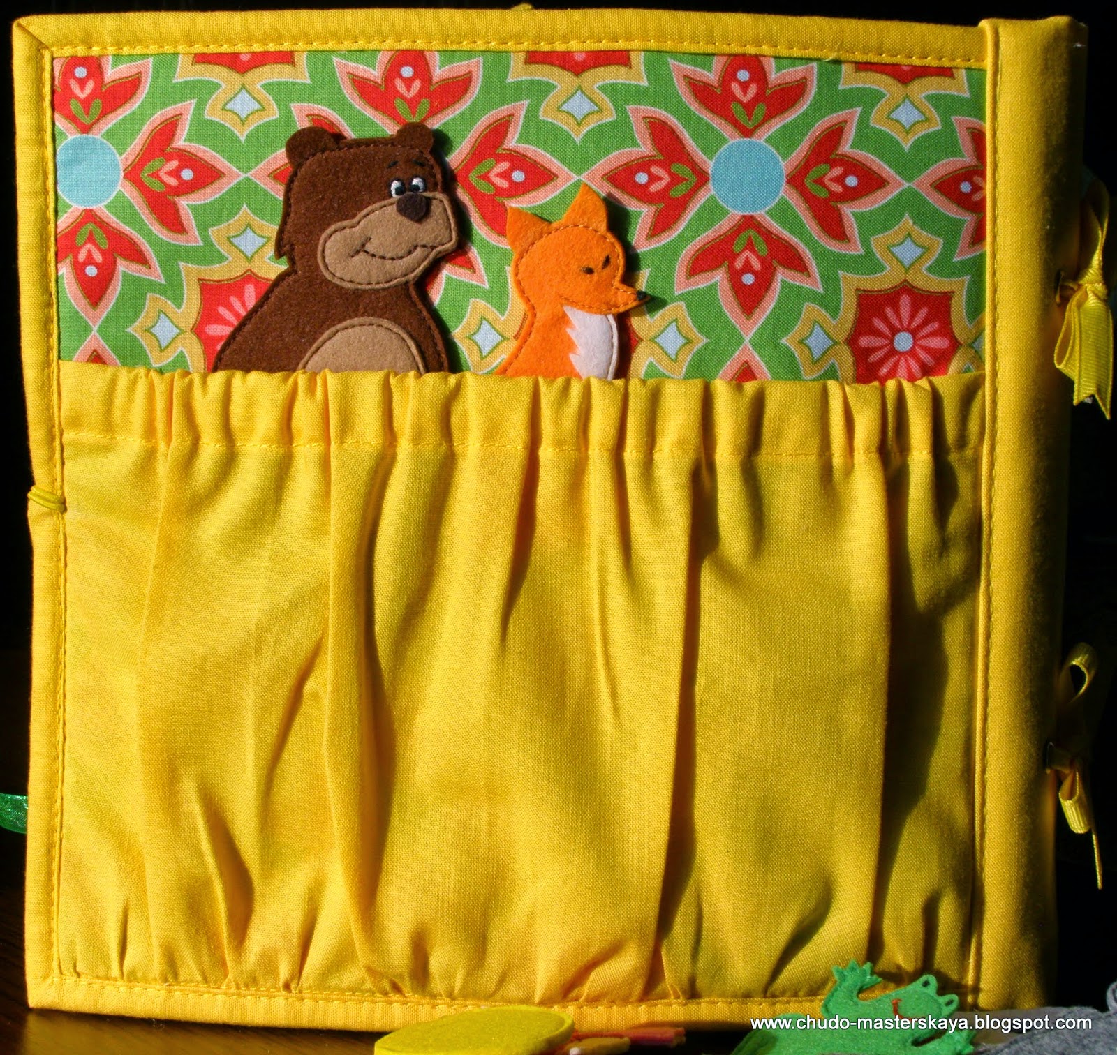 На этот раз решила сделать большой вместительный карман. Эта книжка для малышей, а они в большинстве любят не прилепливать, а отлепливать и часто не хватает времени "разложить всё по полочкам", а в этот карман сгрёб-сгрёб и порядочек!:)))))))