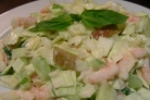 Свое название этот салат получил благодаря входящим в его состав морепродуктам. Очень важно не перебить вкус морепродуктов, а наоборот подчеркнуть их, усилить, в этом помогут огурец и яблоко.