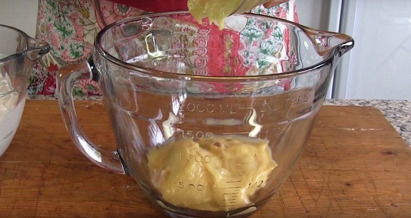 В отдельной емкости смешай нарезанную отварную курицу, сметану, топленое масло и нарезанный кубиками лук.
