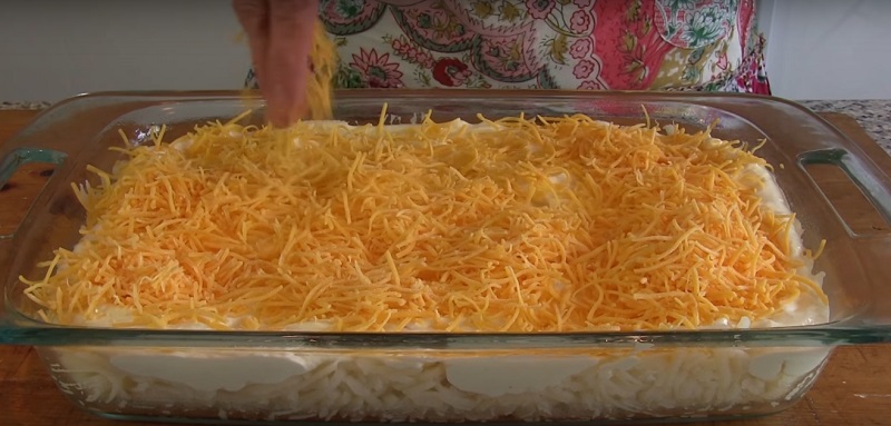 За 5 минут до готовности блюда достань запеканку из духовки и покрой ее тертым сыром. Затем снова поставь запеканку в духовку.