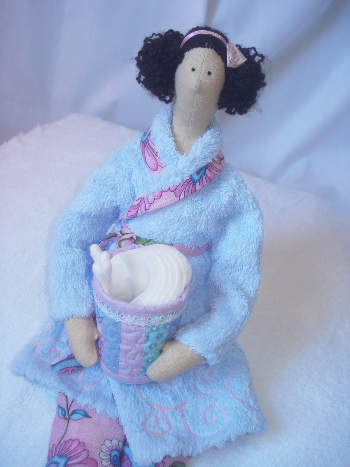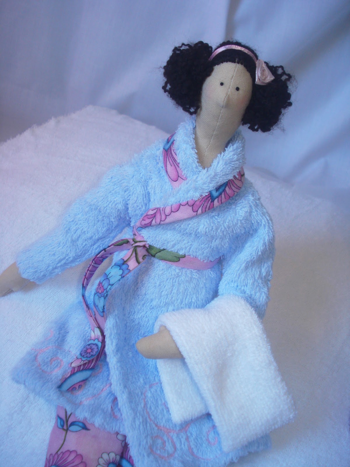 Наконец, попробовала сшить банную фею-тильду. Получилась дама в нежно-голубом и ярко-розовом.