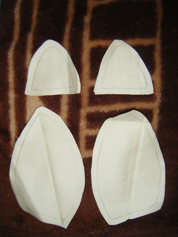 Теперь, клинья, которые мы вырезали попарно, берем 1 пару и вставляем уже вывернутое ухо внутрь, можно заколоть иглой и слегка вывернуть, чтобы посмотреть, нравится нам или нет...