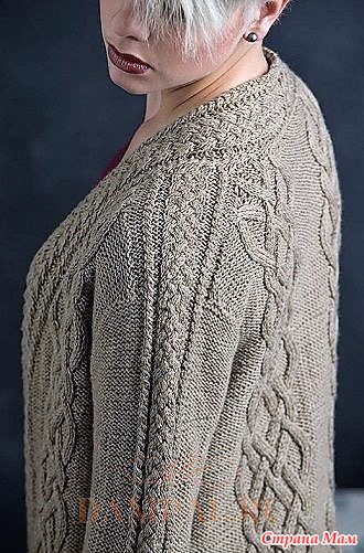 Вязаный кардиган с косами насыщен рисунками и выполняется сверху вниз. Его кельтское название олицетворяет прочность, мощность и силу. |