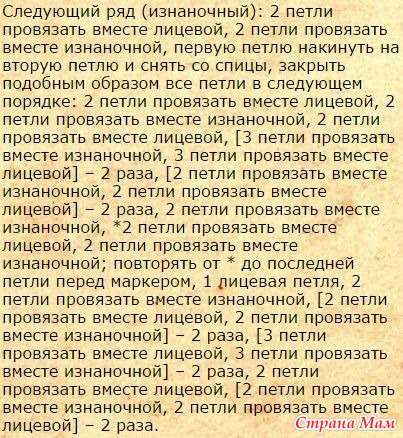 Вязать обоюдоострыми спицами. Петли не соединять в круг.