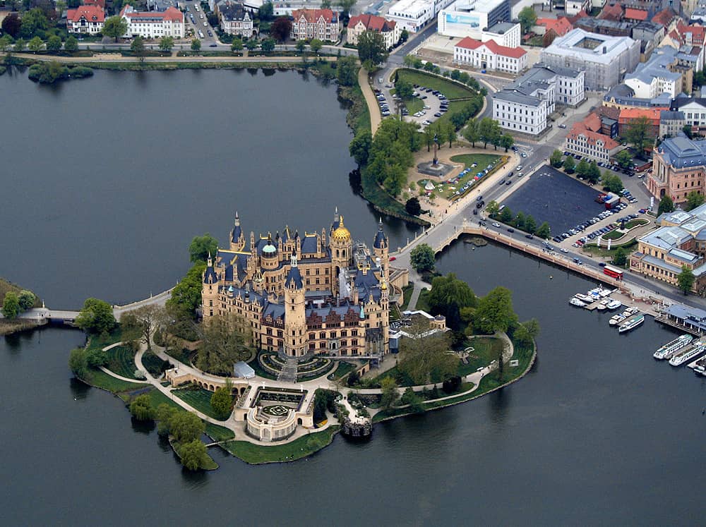 Шверинский замок стоит на весьма живописном острове Шверинского озера, который соединяется с городом и дворцовым садом двумя мостами. Кстати, город Шверин, который является и столицей земли Мекленбург-Передняя Померания, создавался по образу и подобию замка-дворца.