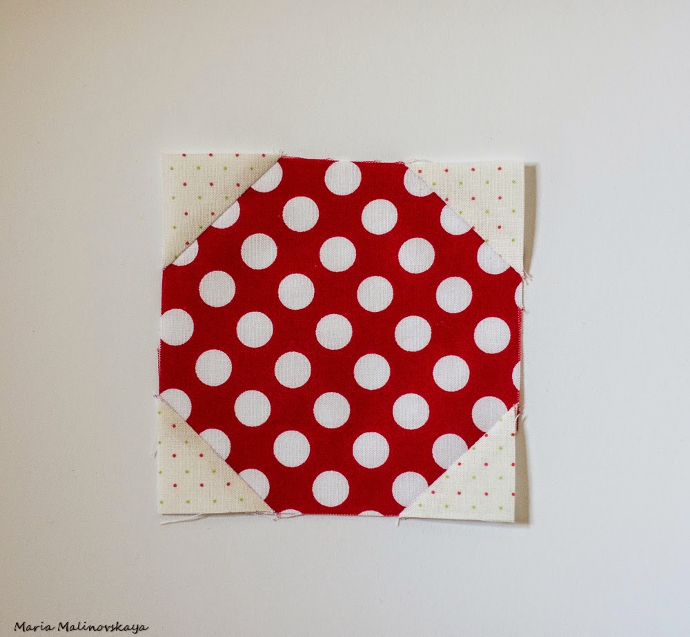 Сшиваем. Очередной важный момент!!! В этом блоке все сшивается с припуском 1/4 дюйма (0,6 см). Иначе ваши детали не сойдуться в итоге.