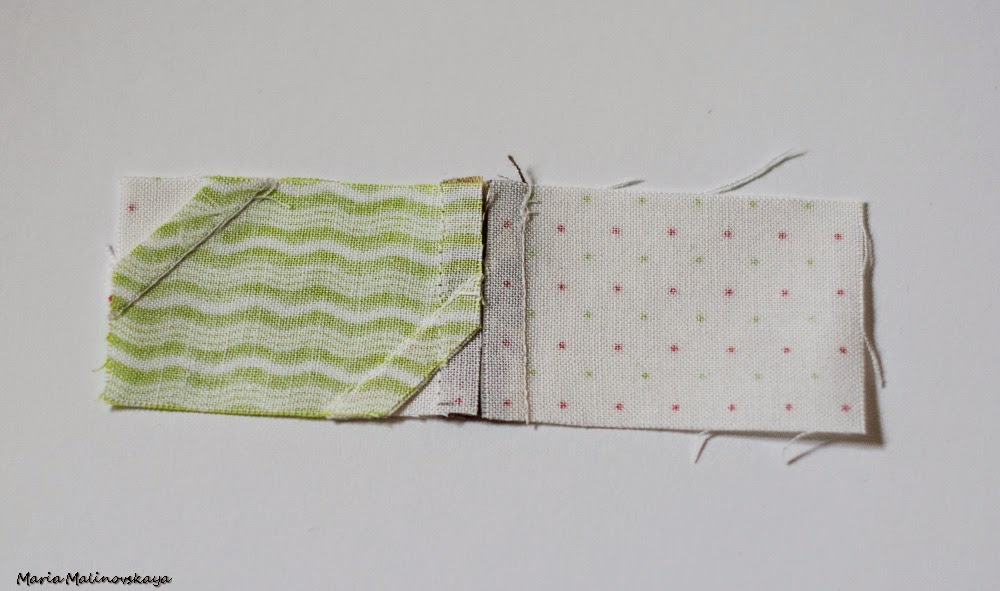 Сшиваем с "листиком". Припуск на шов - 1/4 дюйма! Заглаживаем шов на сторону темной ткани.